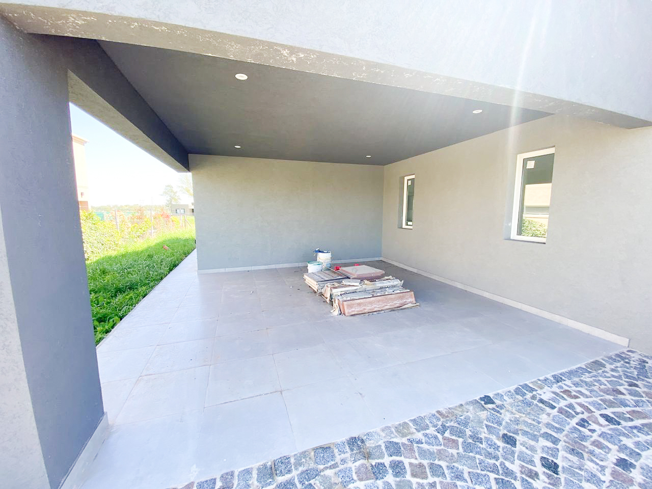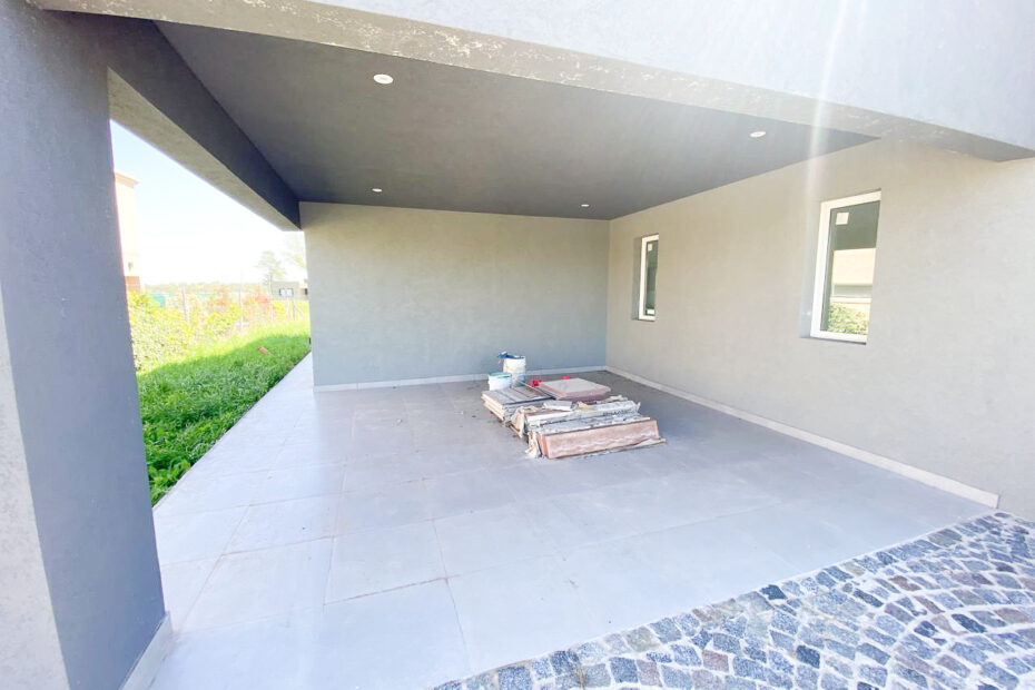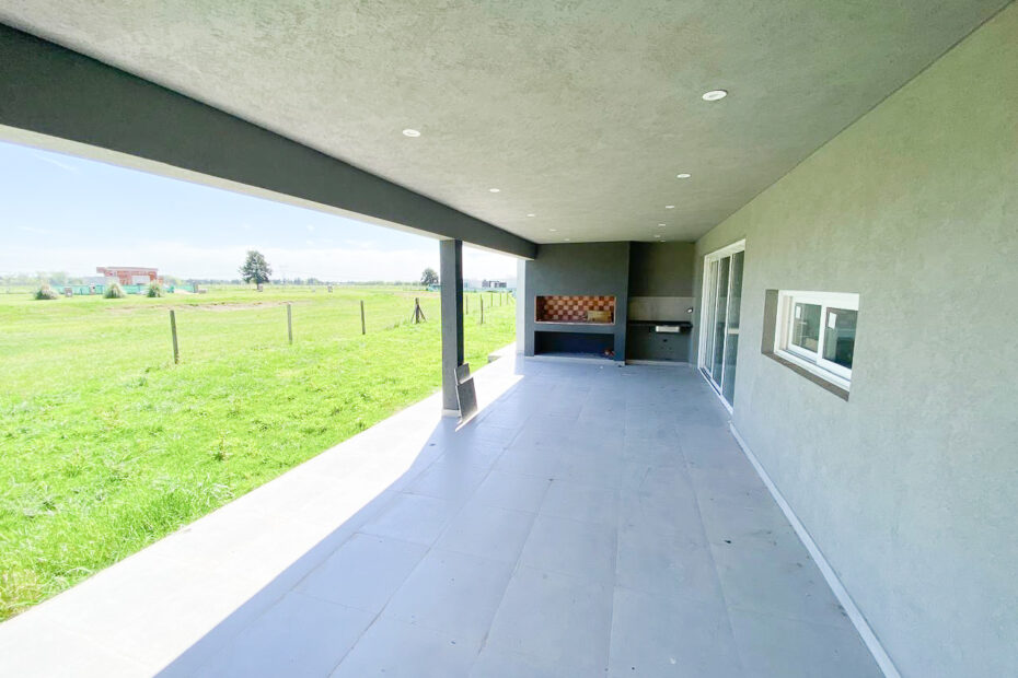 🌿 Galería semicubierta con parrilla.