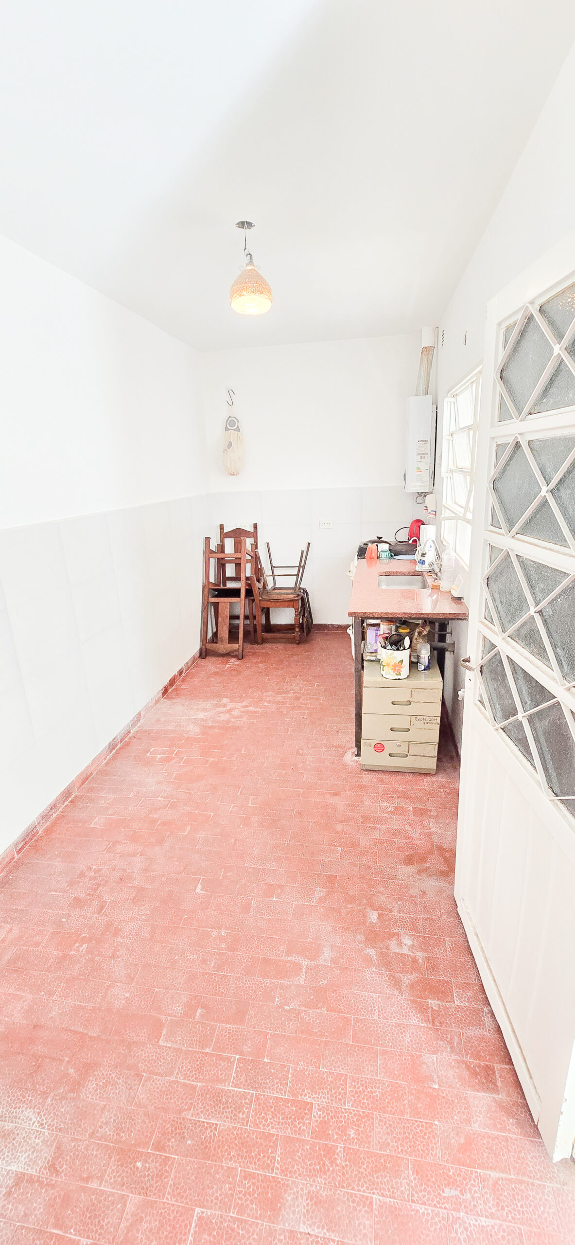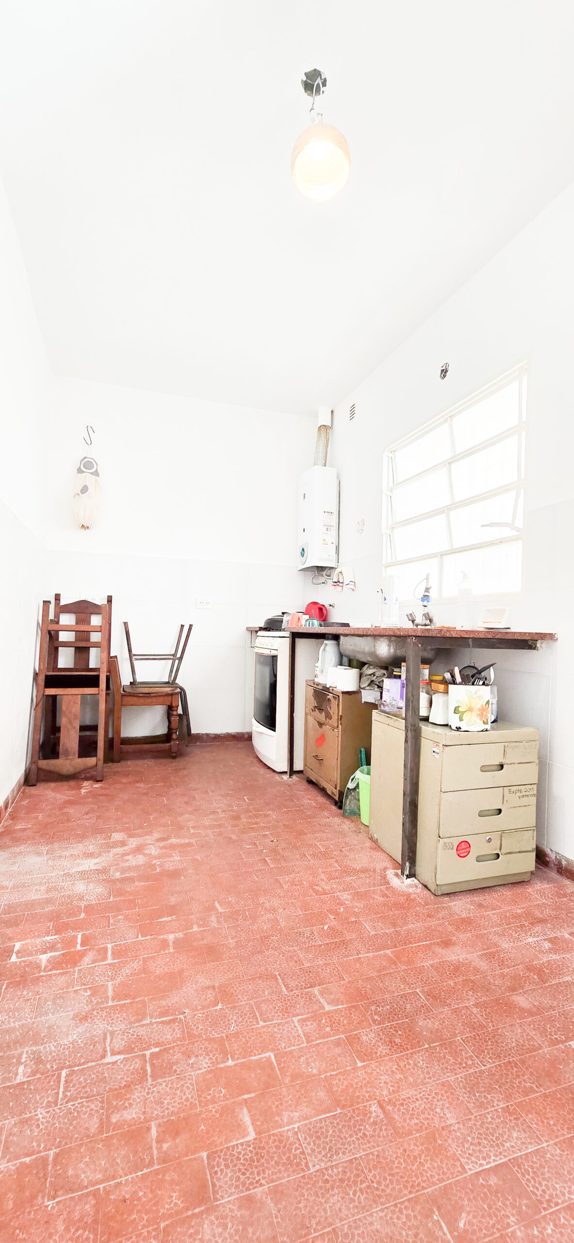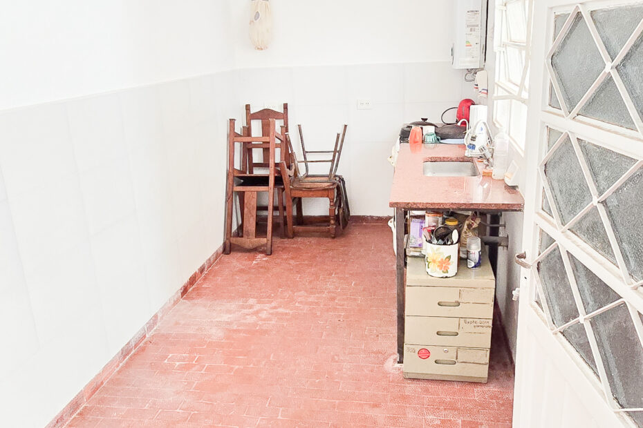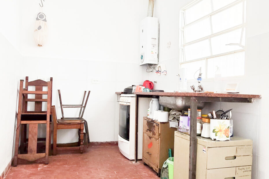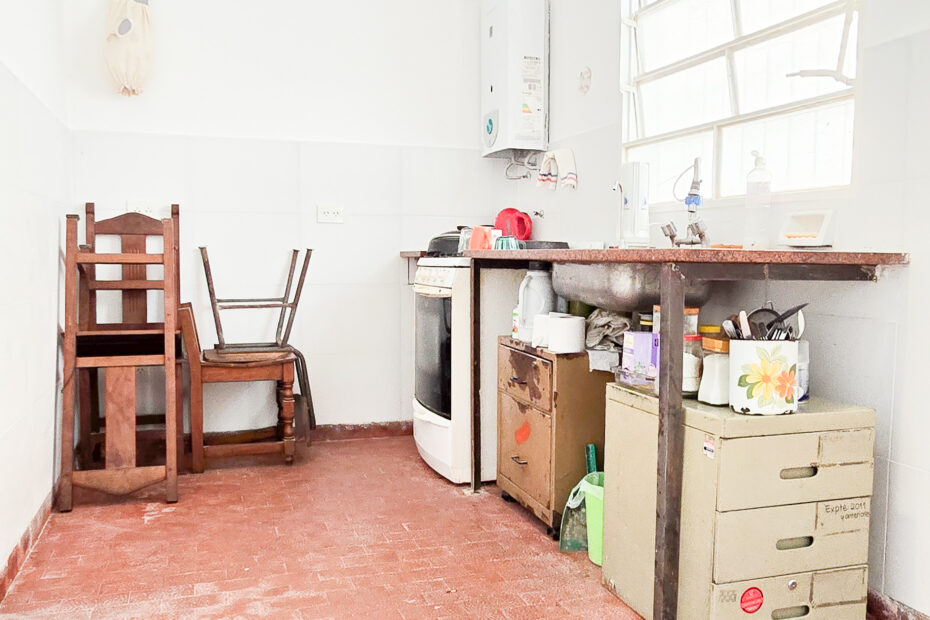 🍳 Cocina espaciosa con vista al patio, muy luminosa.